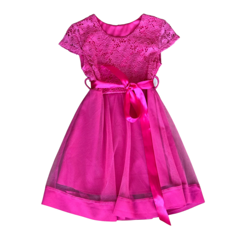 Álomszép pink lányka ruha Ez a csodálatos pink színű ruha igazi hercegnővé varázsolja a kislányokat! A finom csipkés felsőrész és a könnyed, tüllös szoknyarész elegáns megjelenést biztosít bármilyen különleges alkalomra . A deré