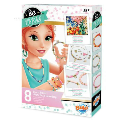 Készítsen 8 db színes ékszert Heishi lapos gyöngyökkel!A készlet mindent tartalmaz, amire szükséged lesz az egyedi kiegészítők megtervezéséhez és összeállításához:-válogatott heishi lapos gyöngyök-pomponok-gyöngyök-charmokAjánlott életkor: 8+Márka: Buki F