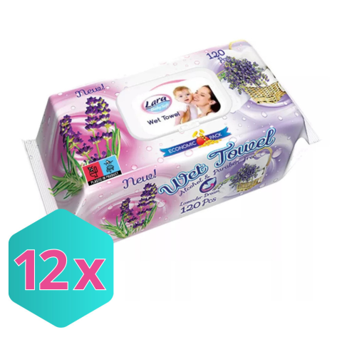 Lara Nedves Törlőkendő, alkoholmentes, parabénmentes Levendula illatú KARTON - 12 db tisztító- és takarítószer, higiénia termékleírás