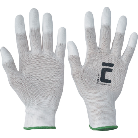 LARK kesztyű, ujjakon PU-ra mártott - 8 • kötött, varratmentes nylon kesztyű vékony poliuretán bevonatú ujjhegyekkel és rugalmas mandzsettával