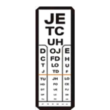 Termék jellemzői: - látásvizsgáló papír tábla felnőttek vízus méréséhez - betűs az egyik fele és villás mintázatú a másik fele - 5m-ről olvasható - önálló megvilágítással nem rendelkezik - nem áttetsző - tábla mérete:22x 63,5 cm .