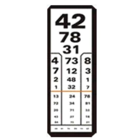 Termék jellemzői: - látásvizsgáló papír tábla felnőttek vízus méréséhez - számos az egyik fele és C mintázatú a másik fele - 5m-ről olvasható - önálló megvilágítással nem rendelkezik - nem áttetsző - tábla mérete:22x 63,5 cm .