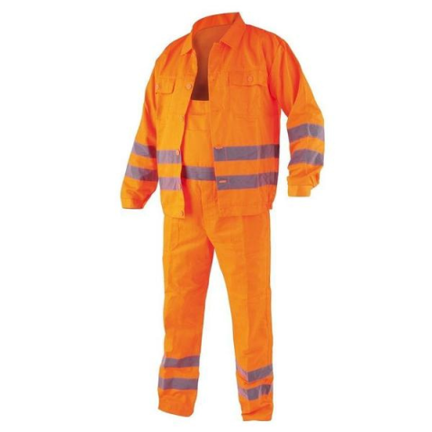 Láthatósági munkaruha S Creston (felső + nadrág) TO-72905JellemzőkKivitel: felső és nadrág szett, élénk narancssárga színű, fényvisszaverő csíkokkal.Záródás: gombolás.Rendeltetés: munkaruha, ahol szükséges a magas láthatóság nappal és sötétben (pl. közút, vasút, építkezés).Műszaki adatokMéret: STestmagasság: 164–172 cmMellkörfogat: 86–94 cmDerékbőség: 74–82 cmSzövet súlya: 245 g/m²Anyag: 60% pamut, 40% poliészterSzabványok: megfelel EN 340:20