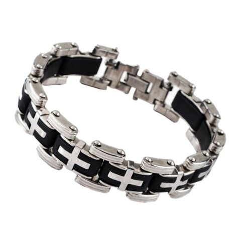 1 kép Látványos nemesacél és szilikon karkötő, ezüst-fekete