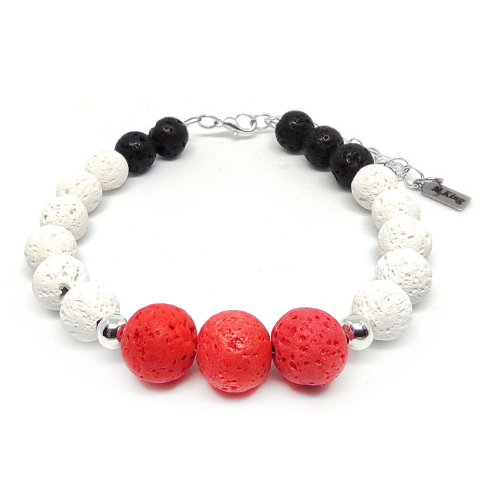 1 kép Lava Flow – Fekete, fehér és piros lávakő ásvány karkötő több méretben, ajándékdobozban