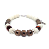 Figyelem! Nem szakad, nem nyúlik! Tartós ékszer. Az ékszer ásványai és tartozékai: – 8 mm-es matt fehér lávakő ásványok – 8 mm-es vörös tigrisszem ásványok – 8 mm-es sötétbarna csíkos üveg – M.King márkajelzésű nemesacél