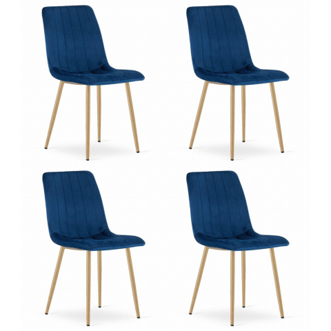 Leobert LAVA sötétkék bársony szék szett (4 db) - Stílus és kényelem egyben! 💙 Dobd fel étkeződet vagy nappalidat ezzel a stílusos és kényelmes Leobert LAVA szék szettel! A sötétkék bársony huzat elegáns megjelenést kölcsönöz, míg a fa színű lábak te...