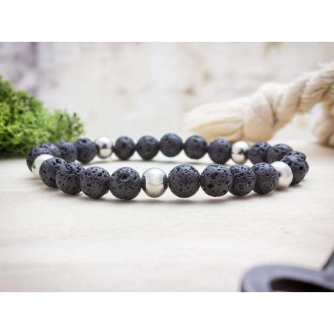 Lávakő és ezüst árnyalatú gyöngy ásvány karkötő