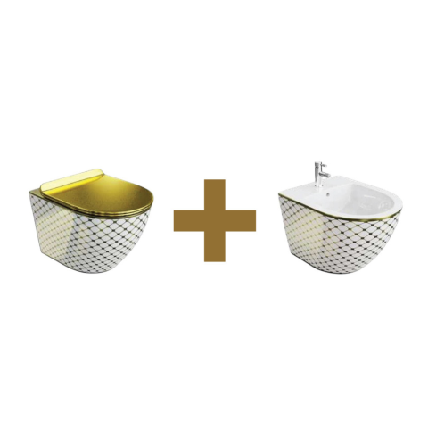 Lavita SOFI SLIM CHECKED GOLD WC+Bidé szett, arany