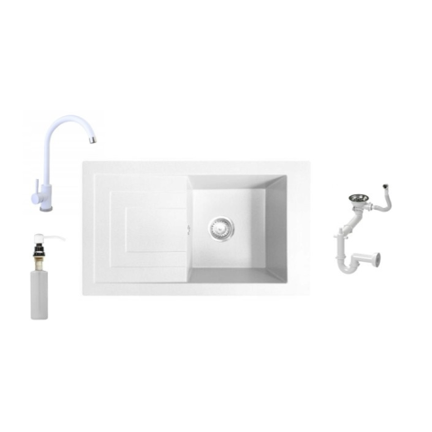1 kép Laweo Jawa Gránit mosogató + Csaptelep + Adagoló (fehér)