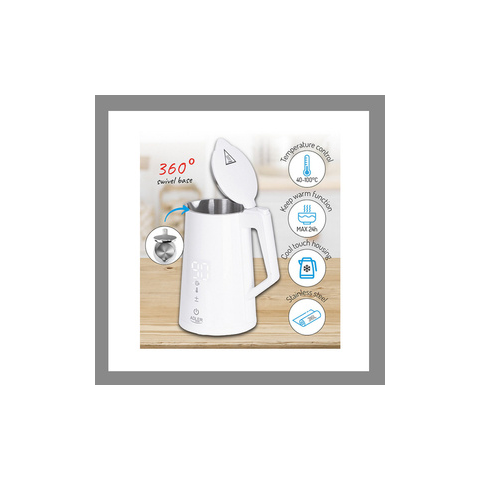 LCD vízforraló AD 1345 whiteLEÍRÁS:• TELJESÍTMÉNY - 1,7L• TELJESÍTMÉNY - 2200W• TELJESÍTMÉNY - 220-240/50-60Hz• KÁBELHOSSZSÁG - 75cm• DUGÓTÍPUS - E/F• MÉRET - 26x22x16CM• SÜTÉSI HŐMÉRSÉKLET BEÁLLÍTÁSA - 40°C | 55°C | 80°C | 90°C | 100°C• A HŐMÉRSÉKLET BEÁLLÍTÁSA MAX. 24H - 40°C | 55°C | 80°C | 90°CJELLEMZŐK:• ROZSDAMENTES ACÉL LAPOS FŰTÉS• KÉTFALÚ HÁZ• ÉRINTŐPAD• VÍZ NÉLKÜLI FŐZÉS ELLENI VÉDELEM• AZ AKTUÁLIS HŐMÉRS