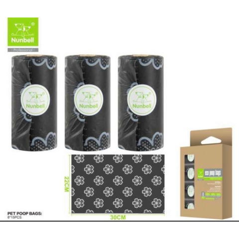 Ez a Nunbell márkájú, lebomló kutyapiszok zacskó szett ideális választás azok számára, akik szeretnének környezettudatosan gondoskodni kedvenceikről. A 8 db-os készlet színes, vidám mintákkal érkezik, kék, rózsaszín és fekete színekben, amelyeken virágminták találhatóak. A zacskók mérete 22x30 cm, így bármilyen méretű kutya számára megfelelő. A lebomló anyagból készült zacskók könnyen használhatók és természetbarát alternatívát kínálnak a hagyom