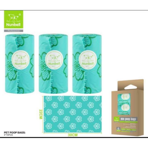 Ez a Nunbell márkájú, lebomló kutyapiszok zacskó szett ideális választás azok számára, akik szeretnének környezettudatosan gondoskodni kedvenceikről. A 8 db-os készlet színes, vidám mintákkal érkezik, kék, rózsaszín és fekete színekben, amelyeken virágminták találhatóak. A zacskók mérete 22x30 cm, így bármilyen méretű kutya számára megfelelő. A lebomló anyagból készült zacskók könnyen használhatók és természetbarát alternatívát kínálnak a hagyom