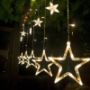 LED csillag beltéri fényfüggöny Dekoratív, kétféle méretű csillaggal szerelt, LED fényfüzér. Díszítse otthonát az ünnep közeledtével, bármelyik szobában jól mutatnak. A nagy csillag 6 db, a kicsi 6 db. LED színe: Melegfehér/Hidegfehér Energiaforrás:180