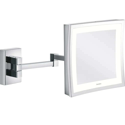 LED-es Fali Tükör Kozmetikai Nagyítóval - 21,5x21,5 cm Ez a stílusos és funkcionális LED-es fali tükör tökéletes kiegészítője fürdőszobájának. A krómozott keret elegáns megjelenést kölcsönöz, míg a beépített LED világítás biztosítja a tökéletes megvi...