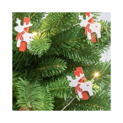 • beltéri kivitel• 20 db melegfehér LED• 20 db fa csipesz, rénszarvas dísszel• átlátszó vezeték• ki/be kapcsolható• tápellátás: 2 x 1,5 V (AA) elem, nem tartozékTulajdonságRészletekelhelyezhetőségbeltérifényforrásmicro LEDfényforrások száma20 dbfényfo