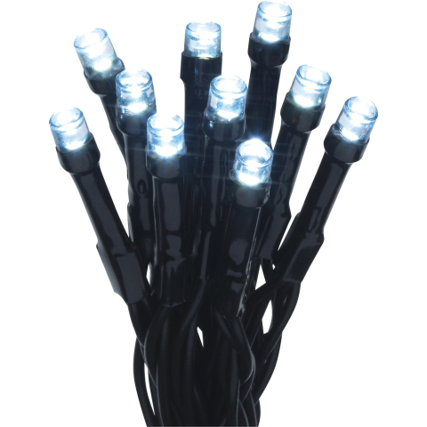 Az 1,42 m hosszú LED-es fényfüzérrel modern és letisztult hangulatot teremthet. A 20 hidegfehér LED intenzív, ragyogó fényt biztosít, amely ünnepi dekorációként tökéletes. Egyszerű fekete kábelének köszönhetően diszkréten illeszkedik bármilyen környezetbe, és a ragyogó fényekre irányítja a fókuszt. Rugalmas használat az elemes működésnek és az időzítőnek köszönhetően A fényfüzér két AA elemmel működik (külön kapható). Így konnektortól függetl