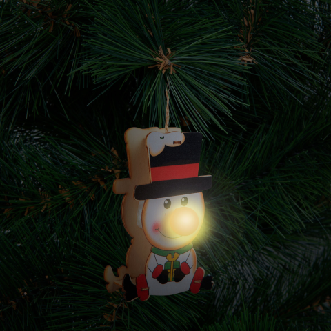 Dekorálja karácsonyfáját egy különleges karácsonyi, aranyos, LED-es karácsonyfadísszel. Teremtsen meghitt hangulatot, díszítse karácsonyfáját természetes anyagokból készült díszekkel. Festett, 3 féle vidám forma, melyek piros orra világít.