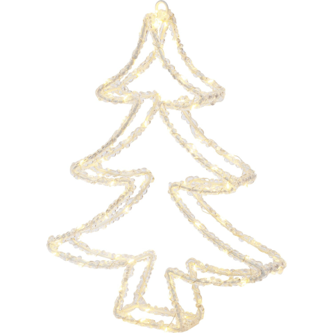 A modern LED-es sziluett fenyőfa figura hangulatos karácsonyi dekoráció bel- és kültérre. Akár az erkélyre, akár a teraszra vagy az ablakpárkányra helyezi el, mindenhol szemet gyönyörködtető látványt nyújt. Az átlátszó figura vonzó 3D-s megjelenéssel inspirál, és egy fa sziluettjét ábrázolja. Magassága 34 cm, szélessége 28 cm, mélysége pedig 5 cm. Könnyen ápolható akrilból készült. A 3D-s fa felállítható és tetszés szerint bel- és kültéren is elhel