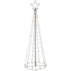 A LED-es karácsonyfa világítás az adventi és karácsonyi időszak dekorációs eleme. A figurát elhelyezheti a kertben vagy a bejáratnál, így az hangulatos környezetet teremt. A karcsú piramis alakját feszes fényfüzérek alkotják, közepén egy tartóoszloppal. Csúcsát egy ötágú világító csillag díszíti. A karácsonyi világítás 180 cm magas, alsó része pedig maximum 60 cm átmérőjű. A filigrán alkotás fekete köracélból és drótból készült. Az anyag időj