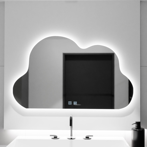 A 60x40-es Cloud LED tükör - Nuvola Touch - fürdőszobájába készült, modern, felhő alakú dizájnnal. LED világítással, párásító rendszerrel a tisztaság fenntartása érdekében párás körülmények között, valamint szabályozható fényerővel rendelkezik a fénye...