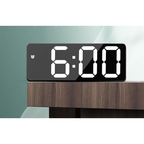 LED világítású digitális asztali óra modern és vonzó dizájnnal, ébresztőóra funkcióval. Biztosan nem fogsz elaludni ha ezt az órát használod, ezenkívül mutatja a dátumot és belső hőmérsékletet is. A kijelző (beállítástól függően) hang hatására kapcsol be, így megelőzve a fölösleges energiafogyasztást. 100 éves naptár funkcióval.