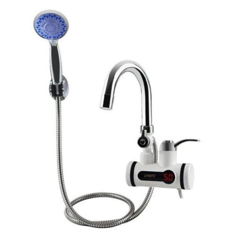 1 kép LED kijelzős vízmelegítő csaptelep – fali csatlakozású, tusrózsával