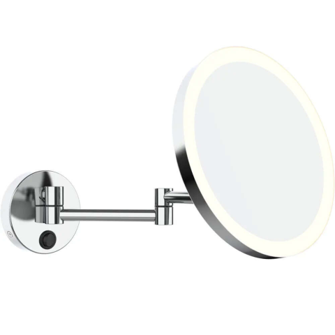 LED Fali Tükör 22cm - 3x Nagyítás, Meleg Fényű Ez a stílusos LED fali tükör tökéletes kiegészítője a fürdőszobának vagy sminkasztalnak. A krómozott fém váz elegáns megjelenést kölcsönöz, míg a meleg fényű LED világítás és a 3x-os nagyítás biztosítja...