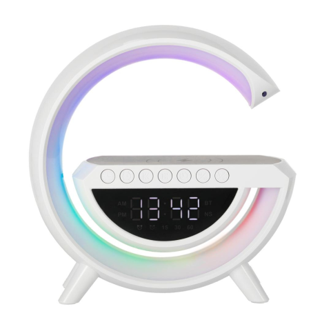 A többfunkciós RGB lámpa ideális választás minden kütyükedvelő számára. A készülék számos praktikus funkcióval rendelkezik: vezeték nélküli töltő, rádió, hangszóró, fehérzaj generátor, óra, lámpa.