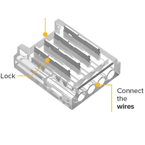 WS2812B FCOB-WIRE átlátszó burkolatú csatlakozó - forrasztás nélküli kivitelben. LED szalagok csatlakozásához.