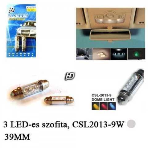 SOFITA 10x39mm típusú fehér színű LED izzóFoglalat: SOFITAMéret: 10x39mmFeszültség: 12Vszín: fehér~30 lumen3 LEDA termék ára / párra vonatkozik!Itt a lehetőség az autóban is spórolni az árammal, aksival! Autó lámpába való rendszám és belső tér világító led égő. Az égőt takaró műanyag nem színeződik el( nem sárgul be), mert a Lednél nincs hőtermelés! A kis méretűknek köszönhetően, pont az olyan kis helyek megvilágítására alkalmasak, mint