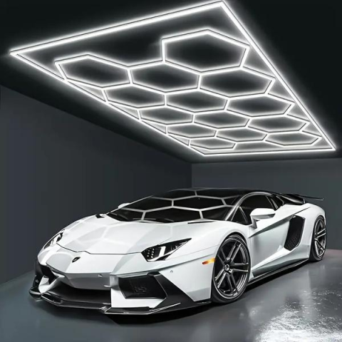Ledes hatszög alakú mennyezeti lámpa, panelvilágítás – EK1551259Modern dizájn és professzionális világítás egyben!Ez a hatszög alakú LED panelrendszer nemcsak lenyűgöző vizuális élményt nyújt, hanem kiemelkedő fényhatékonyságot is biztosít. Ideális választás garázsok, autószalonok, műhelyek vagy akár high-tech belső terek megvilágításához.Főbb jellemzők:Teljes méret: 4845 mm × 2435 mmModell: FWD-001-220VTeljesítmény: 680 WVilágítási szett tartalm