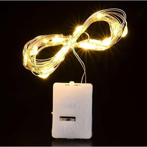 10 ledet tartalmazó rézdrótos ledszál. A gombelemet tartalmazza