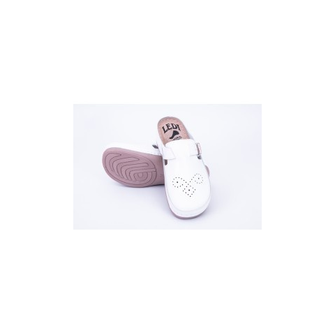 Ledi klumpa Ledi női klumpa - Fehér Női bőr gyógyklumpa 1 csatos (402-18), 36-41-ig méretekben vásárolható, fehér színben. Divatos kivitelű klumpa, melynek perforált bőrből készült felső része körbe öleli a lábat, ezáltal az kevésbé hajlamos kibicsaklá