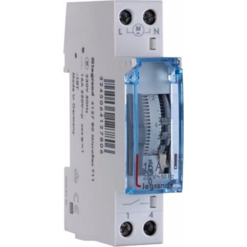 Leg 412780 MicroRex T11 napi programkapcsoló működési tartalék nélkül, függőleges előlappal \nMicroRex T11 napi programkapcsoló működési tartalék nélkül, függőleges előlappal