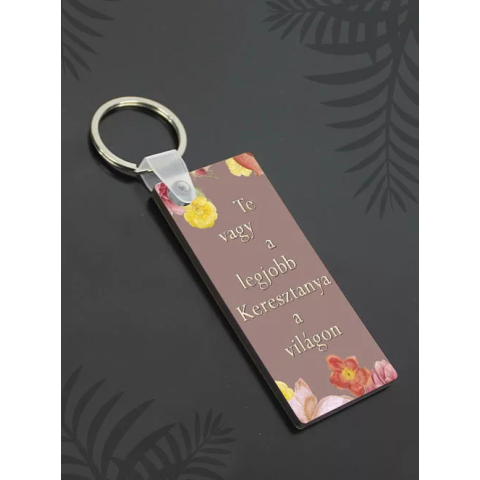 Legjobb keresztanya a világon kulcstartó. Egyedi, virágmintás kulcstartó, amely tökéletes ajándék keresztanyáknak, hogy kifejezd háládat és szeretetedet. A kulcstartó finom virágdíszítéssel rendelkezik, amely tökéletes ajándék minden alkalomra. A rajta sz