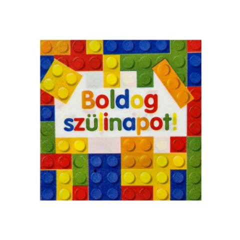 1 kép Lego mintás,színes szalvéta Boldog szülinapot felírattal16 db/ csomag