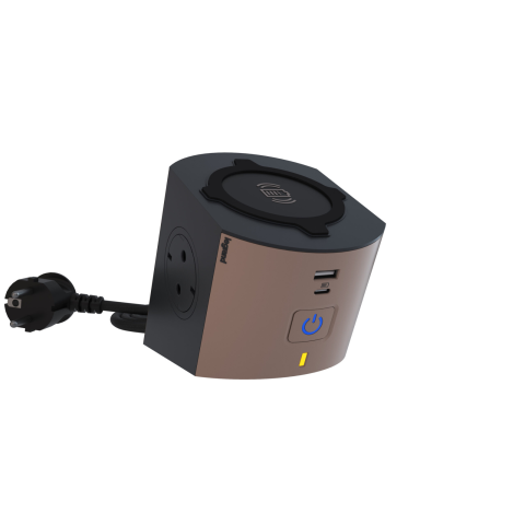 Multifunkciós 2x2P+F töltőállomás indukciós töltési lehetőséggel, USB A és USB C , 2m kábellel.