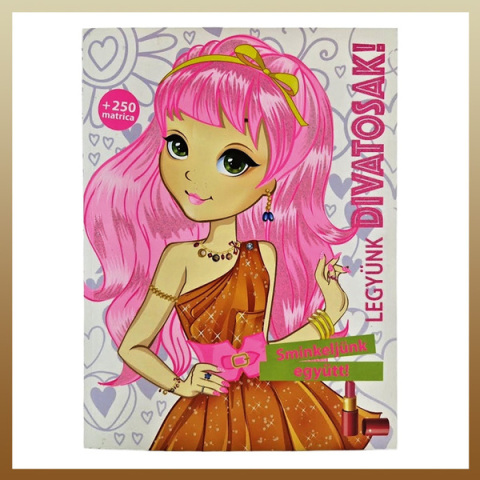 Legyünk divatosak+250 matrica 946952A könyvben sok szép modellt találsz, melyeknek kisminkelheted az arcát, a gyönyörű matricák segítségével pedigkidíszítheted a körmét. Fesd ki őket, és hozz létre olyan stílust, amelyik a legjobban tetszik neked!Munkafüzet mérete : 31 x 23 cmSúlya 0,19 kgHossza 23 cmSzélessége 0,5 cmMagasság 31 cmÉletkor 3+