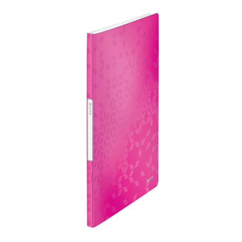Bemutatómappa, 20 zsebes, A4, LEITZ Wow, rózsaszín - kiváló minőségű PP iratvédő mappa ragyogó WOW színekben - ideális dokumentumok prezentálásához, rendszerezéséhez - 20 áttetsző, a gerinchez rögzített tasak - gerinccímke a tartalom könnyű beazonos