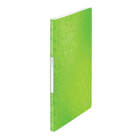 Bemutatómappa, 20 zsebes, A4, LEITZ Wow, zöld - kiváló minőségű PP iratvédő mappa ragyogó WOW színekben - ideális dokumentumok prezentálásához, rendszerezéséhez - 20 áttetsző, a gerinchez rögzített tasak - gerinccímke a tartalom könnyű beazonosításá