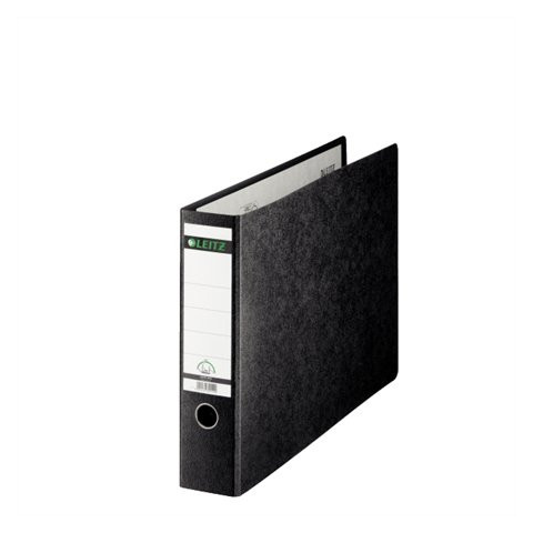 Iratrendező, 77 mm, A3, karton, újrahasznosított, LEITZ 180, fekete - rendkívül vastag, 100%-ban újrahasznosított karton alapanyagból készült, papír borítású iratrendező, egyedülálló 180°-ban elfordítható emelőkaros szerkezettel, mely jelentősen megkön