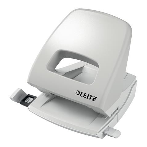 Lyukasztó, kétlyukú, 25 lap, LEITZ Nexxt 5005, szürke Max. lyukasztási kapacitás: 25 lap (80 g-os) A markolatnak és élesebb lyukasztóegységnek köszönhetően a lyukasztás kisebb erőkifejtést igényel Erős távtartó és jól látható méretjelölések a lapok p