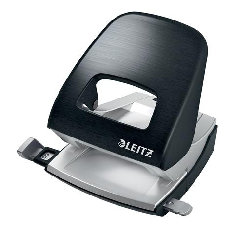 Lyukasztó, kétlyukú, 30 lap, fém, LEITZ Nexxt Style, szaténfekete - egyedi megjelenésű, megbízható teljesítményű lyukasztó mindennapos használatra modern, fémes felülettel és kifinomult színekben - a szabadalommal védett markolatnak és éles lyukasztóeg