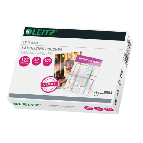 Meleglamináló fólia, 125 mikron, A7, fényes, LEITZ iLam - tökéletes védelmet biztosít a szennyeződések, folyadékok és a pára ellen - mindennapos használatra - kisméretű dokumentumoknak, fényképeknek, A7 méretű kártyáknak - fényes felület a még élénkeb