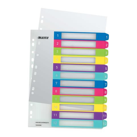 Regiszter, műanyag, A4 Maxi, 1-12, LEITZ Wow -vegyes színű regiszter -nagyméretű téglalapok az előlapon a tartalom feltüntetésére -1-12 felirattal rendelkező regiszter fülek a dokumentumok gyors eléréséhez -nyomtatható tárgymutató az egyedi igényekh