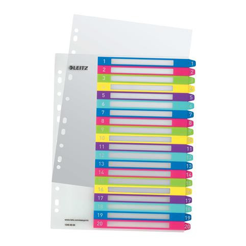 Regiszter, műanyag, A4 Maxi, 1-20, LEITZ Wow -vegyes színű regiszter -nagyméretű téglalapok az előlapon a tartalom feltüntetésére -1-20 felirattal rendelkező regiszter fülek a dokumentumok gyors eléréséhez -nyomtatható tárgymutató az egyedi igényekh