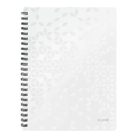 Spirálfüzet, A4, kockás, 80 lap, LEITZ Wow, fehér A funkcionalitás és dizájn tökéletes kombinációja. Ragyogó WOW színekben és stílusos geometriai mintázattal a borítón. -lefűzhető tasakkal a különálló lapok számára -kettős színhatású PP borító kívül