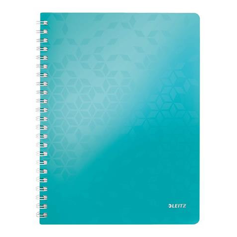 Spirálfüzet, A4, vonalas, 80 lap, LEITZ Wow, jégkék A funkcionalitás és dizájn tökéletes kombinációja. Ragyogó WOW színekben és stílusos geometriai mintázattal a borítón. -lefűzhető tasakkal a különálló lapok számára -kettős színhatású PP borító kívü