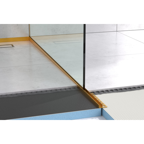 1 kép Lejtésképző profil zuhanyfal üveghez - Szálcsiszolt arany - Rozsdamentes acél, 120cm, 180cm, jobb, bal